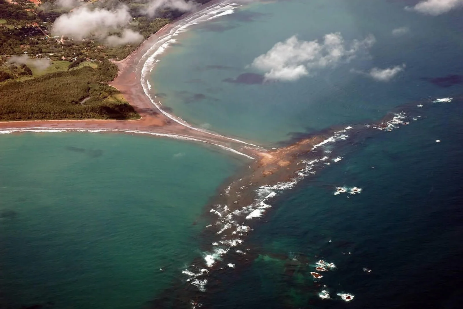 The Marino Ballena National Park is located south of the city of San José. One of the best sights to see is the “Whale’s Tail”, a natural formation of rock and sand that resembles a whale tail sticking out into the sea. This Whale Tail beach is also known as the beach of Punta Uvita.